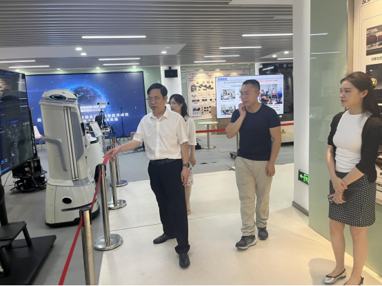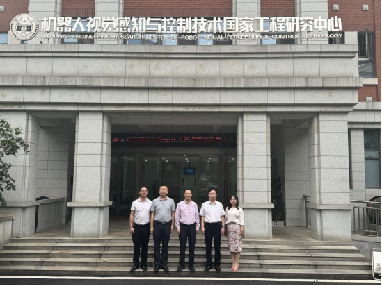 在国家工程研究中心副主任、长江学者张辉教授及相关人员的陪同下,黄昕一行首先参观了国家工程研究中心的实验室及研发设施。研究中心内先进的机器人平台、高精度的视觉感知设备以及一系列研究成果让参观者印象深刻。黄昕对研究中心在机器人视觉感知与控制技术方面取得的成就表示高度赞赏。