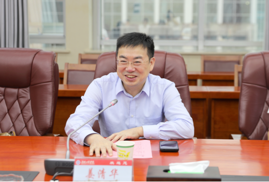 6月26日下午,中国水利水电第八工程局党委书记、董事长姜清华,中国水电八局高级技工学校党委书记、校长贺辉,广州华夏职业学院董事长欧阳少林、副校长阳斌,广东省湘籍企业家商会副会长、广东工程宝科技有限公司董事长李少钊一行来校调研。座谈会在beat365官网二会议室召开,党委书记黄昕出席,学科建设与改革发展处处长邓永和主持会议。