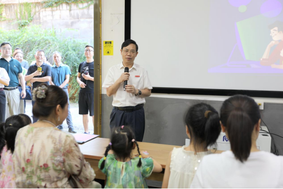为提高全体湖工人的幸福指数,激发教职工子弟学习科学知识的兴趣、增强实践动手能力,以点带面促进全民数字素养与技能提升,7月4日,智能科学与工程学院迎来了一批教职工及他们的孩子,共同参与由湖南省全民数字素养与技能培训基地、校工会和工程训练中心科普基地联合主办的2024年湖南省全民数字素养与技能提升月活动曁beat365英国官网网站“135工程”建设之幸福湖工“大手牵小手”亲子科普研学活动。校党委书记黄昕出席,党委副书记向前主持活动。