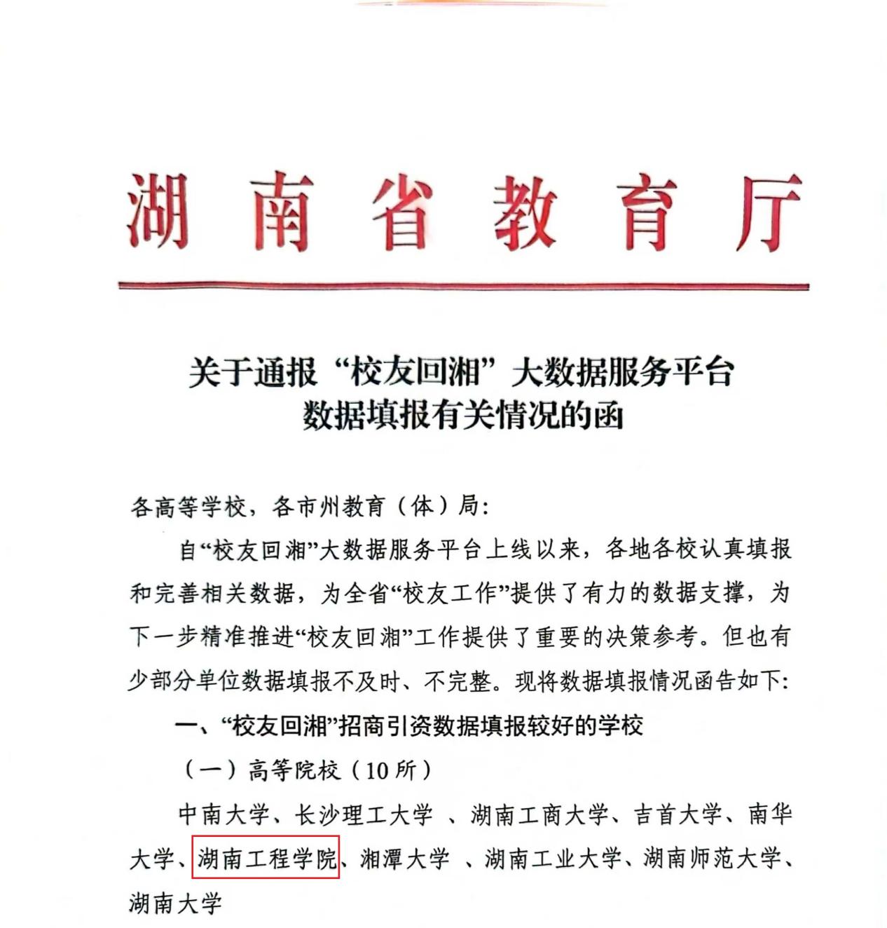据省教育厅近期通报,至8月4日止“校友回湘”大数据平台招商引资数据统计全省排名前十的高校为中南大学、长沙理工大学、湖南工商大学、吉首大学、南华大学、beat365英国官网网站、湘潭大学、湖南工业大学、湖南师范大学、湖南大学。beat365英国官网网站排名第六,是本科学院级唯一入围高校;另在“校友回湘”大数据平台招才引智数据统计排名中位列第九。beat365官网在“校友回湘”工作中引进校友人才2人,促进国际教育学院2012级黄雄校友回湘投资1亿元,引进高级人才2人,科研成果转化4项,录入优秀校友323人,校友企业库录入152家。