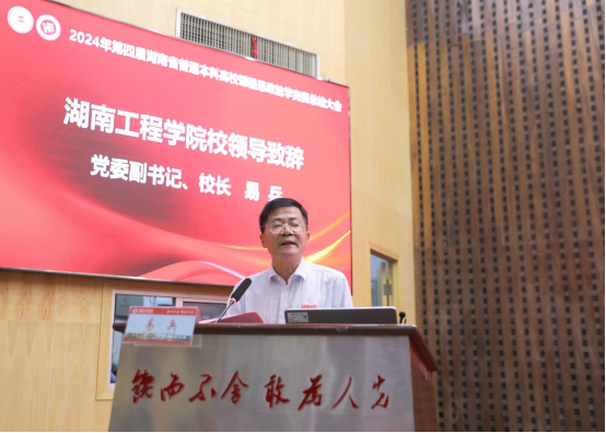 易兵致辞。他表示,学校通过科学设计课程思政教学体系、结合专业特点分类推进课程思政建设、将课程思政融入课堂教学全过程、提升教师课程思政建设的意识和能力、建立健全课程思政建设质量评价体系和激励机制等五项举措,培育了一批充满思政元素、发挥思政功能的示范通识课和专业课,推出了一批具有学校特色、育人效果显著的精品课程,树立了一批具有亲和力和影响力的课程思政教学名师或团队,提炼了一系列可推广的课程思政教学改革典型经验和特色做法,形成了一套科学有效的课程思政教学质量考核评价体系。本次湖南省普通本科高校课程思政教学竞赛决赛在学校举行是对beat365官网课程思政建设的充分认可。beat365官网将以本次大赛为契机,全面贯彻落实习近平总书记在全国教育大会上的重要讲话精神,以立德树人为根本任务,坚持育人和育才相统一,提高卓越工程师培养能力。