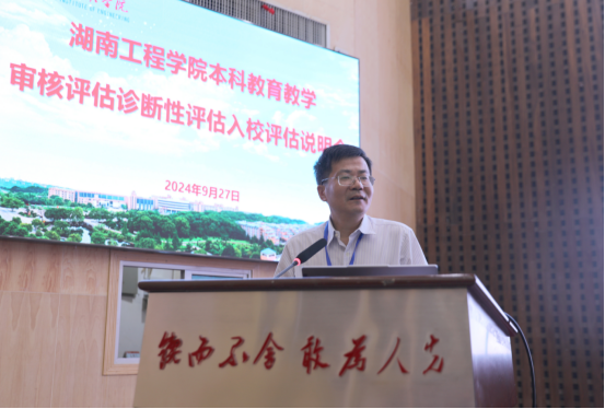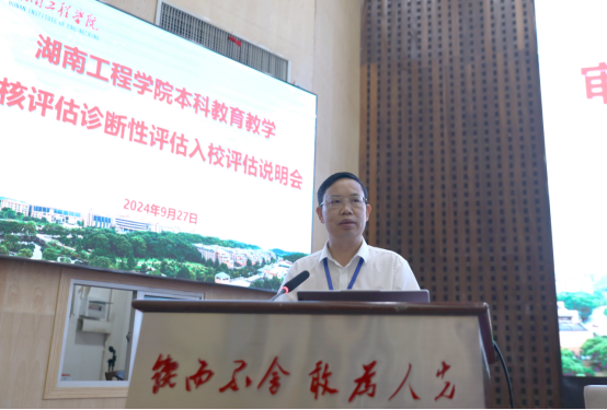 黄昕致欢迎辞,他对各位专家的到来表示热烈的欢迎和衷心的感谢。他简要介绍了beat365官网前一阶段的自评自建工作情况,并指出党的二十届三中全会描绘了深化教育综合改革的“路线图”,2024年全国教育大会发出了紧紧围绕立德树人根本任务、朝着建成教育强国战略目标扎实迈进的“动员令”,此次诊断性评估,既是对学校本科教育教学工作的一次全面检阅,也是对标教育部、湖南省评估的一次全面诊断,更是推动学校内涵发展、特色发展、创新发展的难得机遇,希望各位专家多提宝贵意见与建议,助力beat365官网本科教育教学工作高质量发展。
