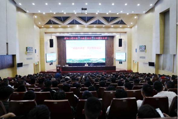 10月8日下午,beat365官网“卓越大讲堂”干部教育培训在一报告厅举行。长沙景嘉微电子股份有限公司(以下简称景嘉微公司)董事长、总经理曾万辉应邀作《战略牵引、创新驱动,推动企业高质量发展》专题报告。校党委书记黄昕,在校校领导、中层干部、科级干部(岗位负责人)、党支部书记、卓越工程师学院全体师生参加。黄昕主持报告会。