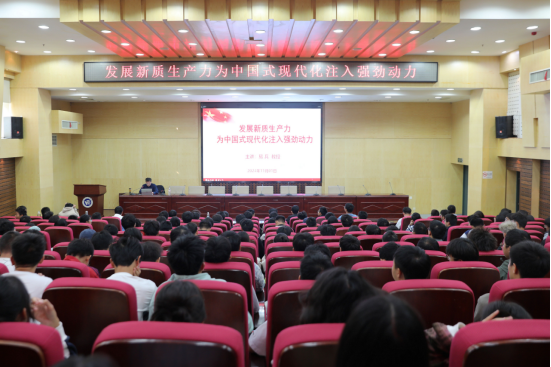 11月1日上午,党委副书记、校长易兵在二报告厅以《发展新质生产力 为中国式现代化注入强劲动力》为题为材料与化工学院、信息科学与工程学院两百多名大一学生讲授了一堂精彩深刻的思政课,勉励广大新生奋进新征程、建功新时代,为实现中华民族伟大复兴贡献青春力量。