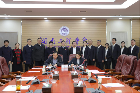 刘建强回顾了长期以来双方在人才培养、科学研究等方面的密切交流和结下的深厚情谊。他表示,湘潭医卫职业技术学院在转型发展中,一直致力于突破专业建设、人才引进、师资队伍等方面的瓶颈。此次战略合作协议的签署,将促进两校在学科建设与科学研究、教育教学与人才培养、师资队伍建设、干部队伍建设、高校管理与服务等方面开展深入合作,实现学科建设交流联动、科研资源共享、本科专业合作共建、人才联合培养、师资相互支持等目标,推动以“工医结合”为主题的共建共享、互利共赢,提升两校服务构建“4×4”现代化产业体系和地方经济社会发展的能力。