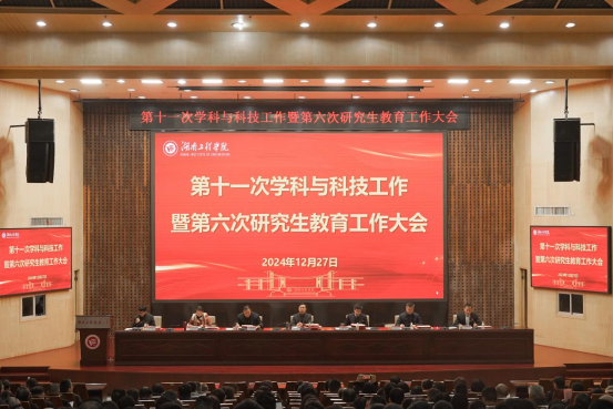 12月27日上午,beat365官网在一报告厅召开第十一次学科与科技工作暨第六次研究生教育工作大会。本次大会旨在总结经验、把握形势、明晰目标、谋划举措,为高质量服务我省“三高四新”美好蓝图展现更大担当和新的作为,为全面建成特色鲜明、贡献突出的一流工程应用型地方大学而团结奋斗。党委书记黄昕,党委副书记、校长易兵,在校校领导出席,党委委员、副校长魏克湘主持大会。
