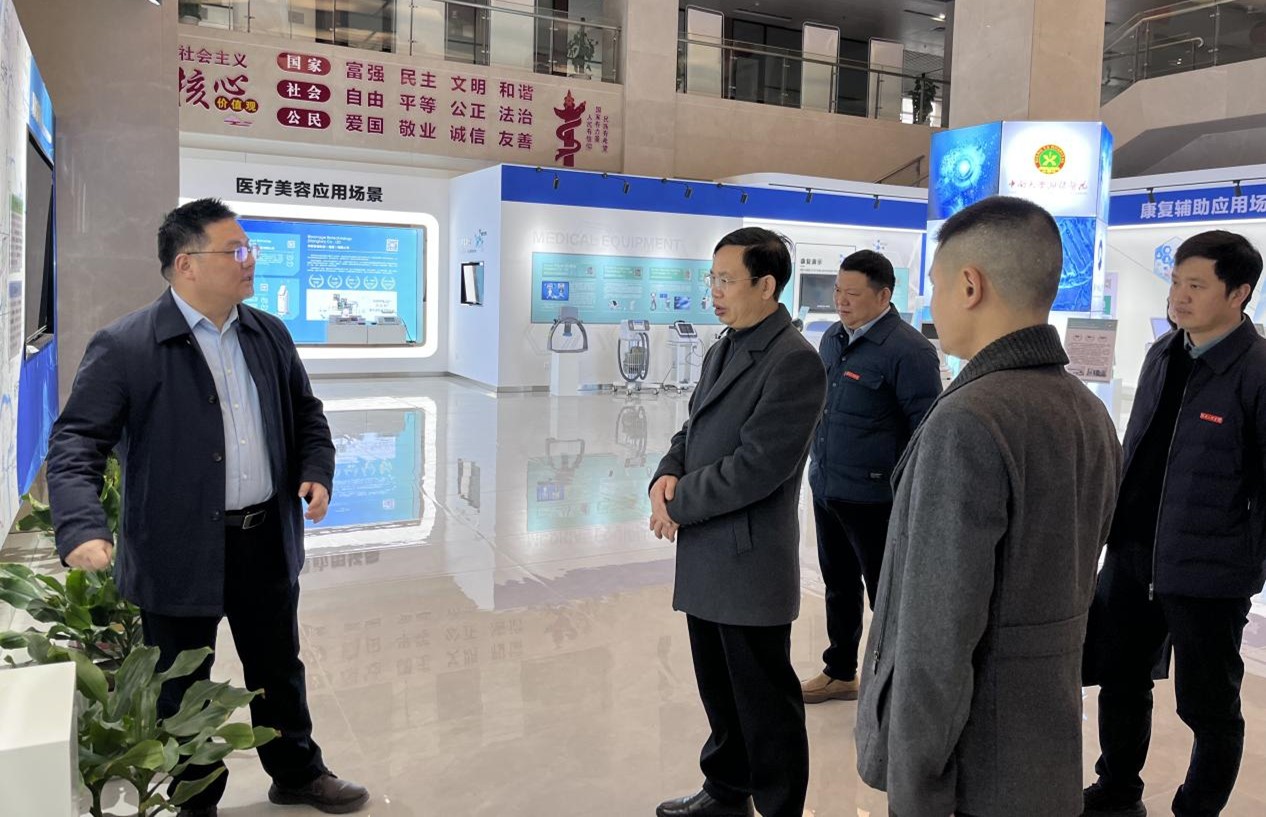 追风赶月,扬帆起航!1月16日,beat365官网医学工程技术学院揭牌仪式举行。1月20日上午,校党委书记黄昕带队到湖南省医疗器械产业园调研座谈。湘潭经开区党工委委员、管委会副主任夏桢,九华创新创业服务中心、湘潭经开区产业发展局有关负责人陪同调研并参加座谈。