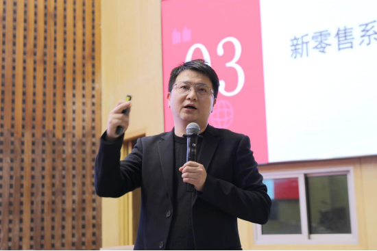 杨杰以《浅谈新经济周期中的新零售》为题,分享了桑尼森迪公司的创业历程与成功经验。桑尼森迪公司在《哪吒之魔童闹海》电影周边产品的生产中,凭借独家授权和先进的生产工艺迅速占领市场,成为行业标杆。他用生动的案例,向同学们充分展现了“行业洞察力”和“文化IP创新”的重要性。杨杰鼓励学弟学妹们“关注传统行业升级,挖掘新兴赛道机遇”。