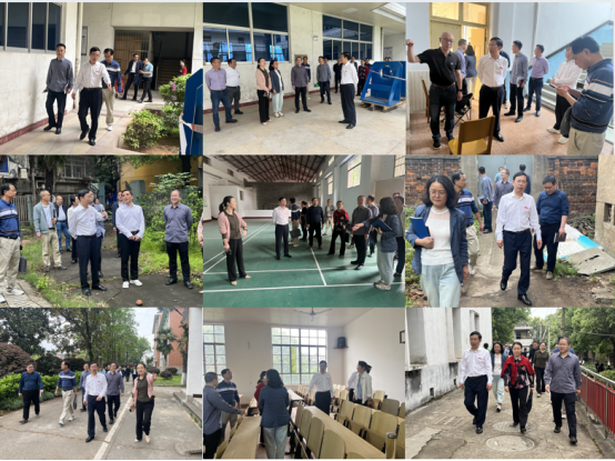 黄昕一行先后走访书院路校区办公楼、停用楼房、运动场、原仓库及幼儿园等区域,详细了解资产现状及存在的问题。黄昕表示,书院路校区作为学校发展历程中的重要承载地,承载着深厚的历史底蕴和校友情感,但部分建筑年久失修、设施老化,亟待通过系统性修缮和功能优化焕发新生。他强调,要重点梳理危房隐患、电力扩容需求及屋顶漏水等基础问题,为后续规划提供精准依据。