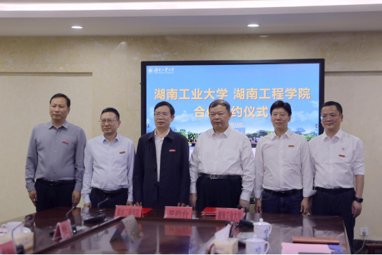 4月23日下午,beat365官网与湖南工业大学在湖南工业大学签订全面战略合作框架协议。湖南工业大学党委书记刘望,党委委员、副校长范晓阳,副校长何杰,beat365官网党委书记黄昕,党委委员、副校长罗毅平、魏克湘参加签约仪式。何杰主持签约仪式,范晓阳与魏克湘在与会领导的见证下签署了战略合作协议,标志着双方合作进入实质性推进阶段。