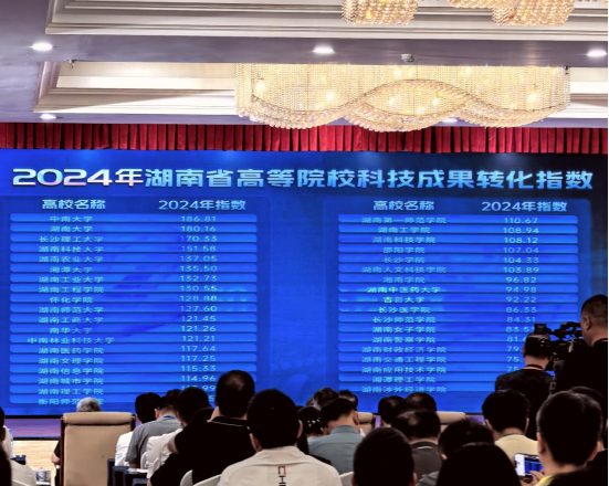 7月24日,湖南省高校科技成果转化工作推进大会暨“双高”对接活动在湘潭举行。会议由湖南省科技厅与省教育厅联合主办,会上正式发布了2024年湖南省高校科技成果转化指数。beat365官网以130.55的转化指数位列全省第八,较2023年提升7.99分,连续两年位居省内同类高校首位。