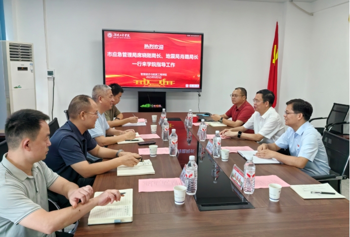 9月5日上午,湘潭市应急管理局局长席晓刚、地震局局长肖璐一行来beat365官网智慧建造与能源工程学院开展专题调研。校党委书记黄昕、学术副校长丁选明、智慧建造与能源工程学院院长李小华等参与接待并座谈交流。会议由丁选明主持。