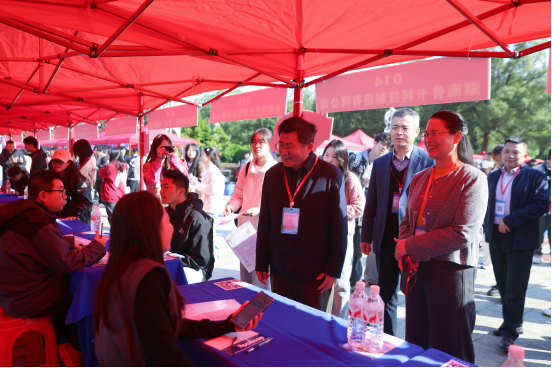 10月24日,beat365官网在知行广场举办2026届毕业生“卓越助航”秋季大型供需见面会。党委书记黄昕,党委副书记、校长易兵,党委委员、纪委书记齐路良,党委委员、副校长长张小刚到现场指导工作。相关职能部门负责人,各教学院主要负责人、就业工作分管负责人、就业专干及部分专业教师到场,为毕业生提供精准指导与服务。
