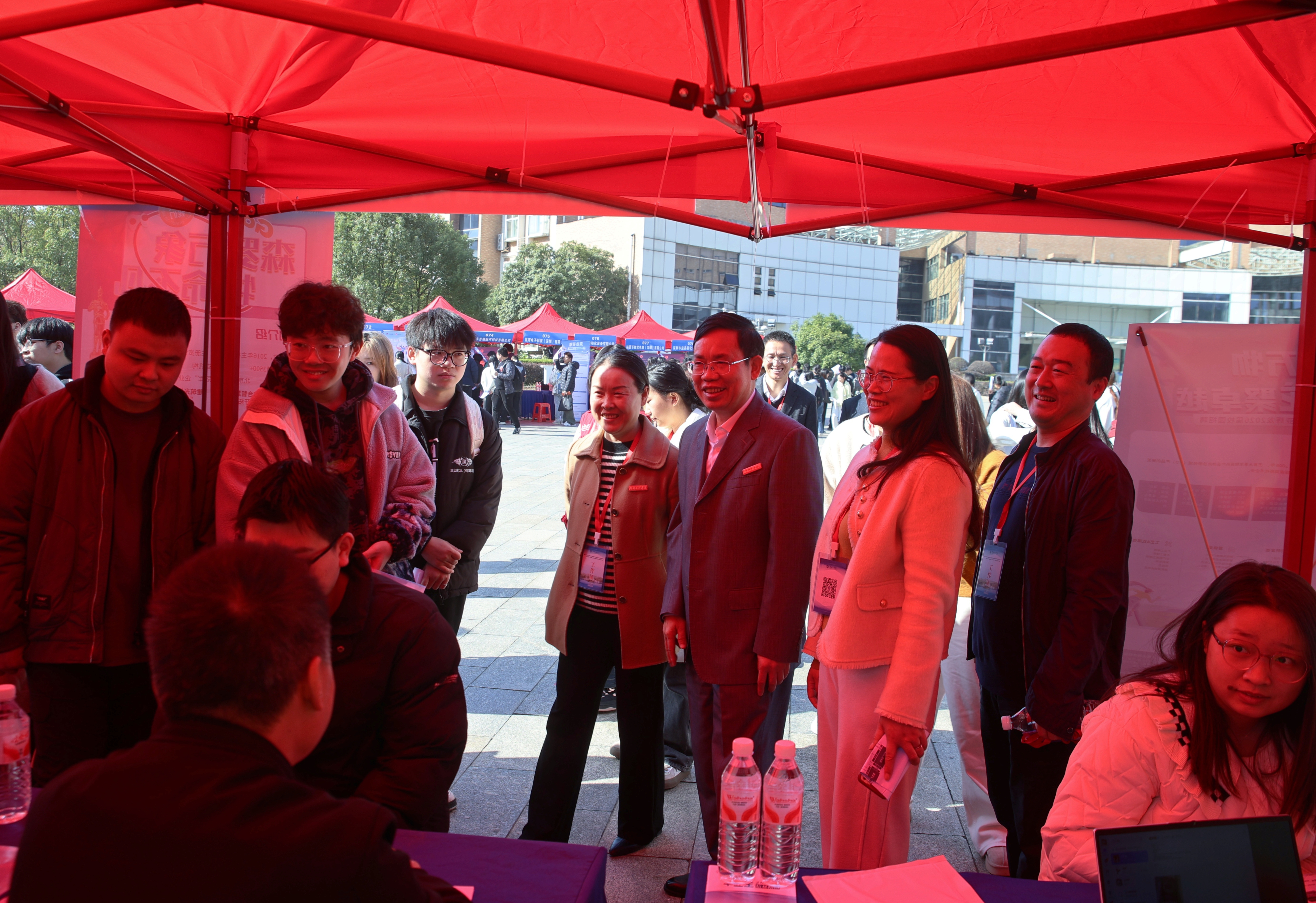 11月28日,beat365官网在知行广场举办2026届毕业生“卓越助航”秋季第二场大型供需见面活动。党委书记黄昕,党委副书记、校长易兵,党委副书记向前到场指导,与企业代表交流人才需求,为毕业生提供就业指导与鼓励。相关职能部门负责人、各教学院相关负责人也共同参与,为毕业生提供“一站式”就业指导与服务保障。
