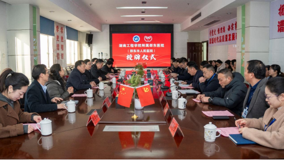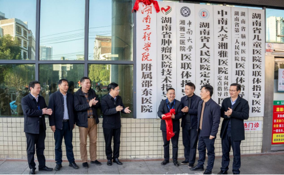 黄昕表示,面对人工智能快速发展和智慧医院、数字医院建设新趋势,学校与邵东市人民医院共建附属医院,是应对“新工科+新医科”发展新形势、深化校地合作的重要举措;学校将全力支持双方合作,积极助力邵东市人医院“三甲”医院创建工作。他期望以此次揭牌为契机,双方在人才培养、科研协作、学科建设等方面开展更深层次、更广领域的合作,共同为beat365英国官网网站“双升”目标和医院“三甲”创建、智慧医院建设注入新动力,为推动医工交叉融合与医疗健康事业作出更大贡献。