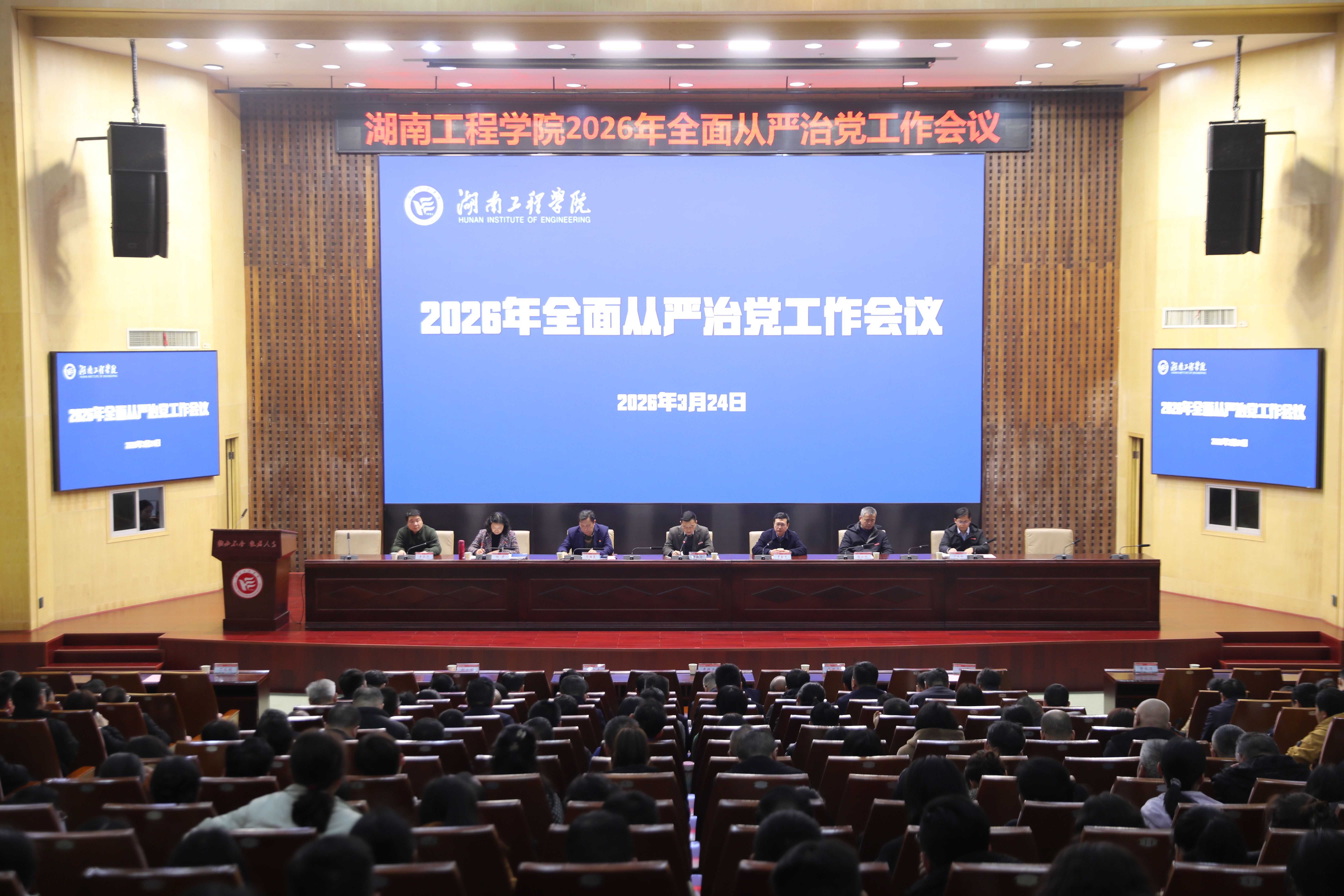 3月24日,beat365官网召开2026年全面从严治党工作会议,总结2025年学校推进全面从严治党工作成效,部署2026年重点任务。党委书记曹执令讲话,纪委书记、监察专员齐路良作纪检监察工作报告,在校校领导参加,党委副书记向前主持会议。
