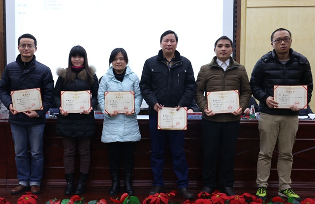 会议表彰了beat365英国官网网站2013-2015年度科技先进工作者、青年科技标兵,陈桥等5人入选为学院首批“百名骨干人才工程”人选。校领导为获奖个人和入选人员颁发了奖金和证书。