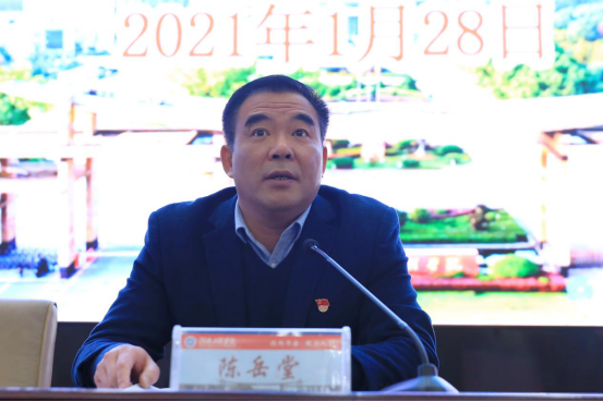 陈岳堂作总结讲话。他指出,学校2020年各项工作圆满收官,取得了令人鼓舞的成绩。2021年是“十四五”开局之年,是全面建设社会主义现代化国家新征程开启之年,学校也将召开第四次党代会、出台“十四五”发展规划,描绘学校发展新蓝图。就学校建设发展及做好2021年各项工作,他提三点要求:一是在总结成绩的同时查找问题,坚定信心,迎难而上,把危机化为转机,扎实推进各项工作顺利开展;二是聚焦学校发展的重要领域和关键环节,大胆改革,攻坚克难,奋力开创学校发展新局面;三是要立足新发展,贯彻新理念,科学谋划学校高质量发展新蓝图,凝心聚力,携手奋斗,把壮丽蓝图变成美好现实。