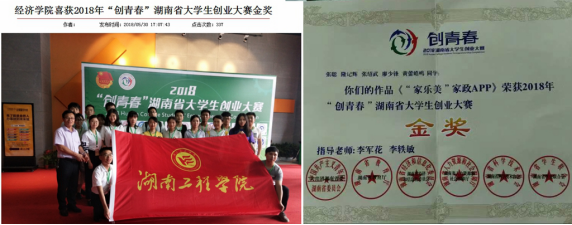 经济学院学子获得“创青春”湖南省大学生创业大赛金奖