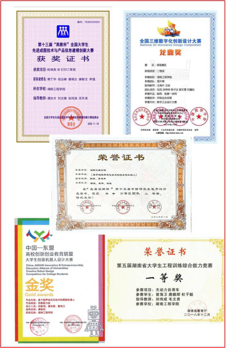5年来,中心老师立项省级项目7项、横向科研项目10项、实用新型授权41项、发明专利实审7项;在各类刊物发表科研论文37篇,其中SCI收录2篇,EI收录5篇,A类论文3篇,CSCD核心1篇;立项省级教改项目6项、校级教改重点项目3项和一般项目4项。2015年、2017年为中南林业科技大学的2300多名大学生进行了金工实习培训,得到该校领导和师生的一致好评。积极开展职业技能培训,800余名学生获得职业资格证书。2019年国家首批 “智能制造职业技能评价考试站”在中心挂牌成立;2021年“智能与智造产业学院”成立并在中心挂牌。