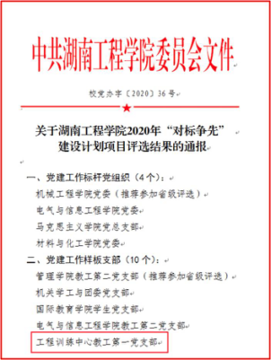 工程训练中心认真落实全面从严治党的要求,牢牢把握意识形态工作的主动权,不断加强组织建设,创建学习型党组织,制定学习计划,拓宽学习途径;强化阵地建设,“党员活动室”布置规范,设立“党务公开栏”推进党务公开,利用“党建学习角”拓展理论学习阵地;机构设置更加合理规范,支部书记实现了双带头人的全覆盖,选拔作风扎实、工作责任心强的老师担任支委会成员,班子成员之间配合默契,工作效率高、成效好;完善基层党组织工作规范,推进决策科学化、民主化,中心重大事情经支委会研究再提交党政联席会议决定,充分发挥党组织的政治核心作用和监督保证作用;深入开展主题活动,增强党组织的凝聚力和战斗力,促进中心工作全面协调发展;加强党风廉政建设的自检自查,层层签订党风廉政建设责任书,党风廉政建设工作稳步推进。2016年获beat365英国官网网站“支部风采展示”活动三等奖,2020年工训中心党总支一支部被评为“样板支部”,二支部书记刘美华教师讲授的党课《弘扬艰苦奋斗精神 创造美好湖工》获beat365英国官网网站精品党课三等奖、《“训赛创服”一体化实践育人体系研究》立项为校级思想政治工作精品项目。