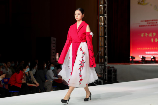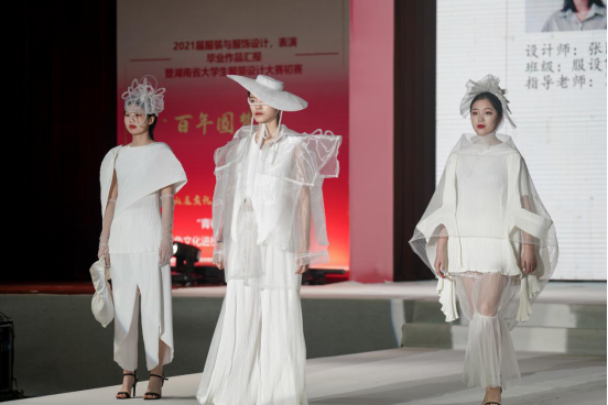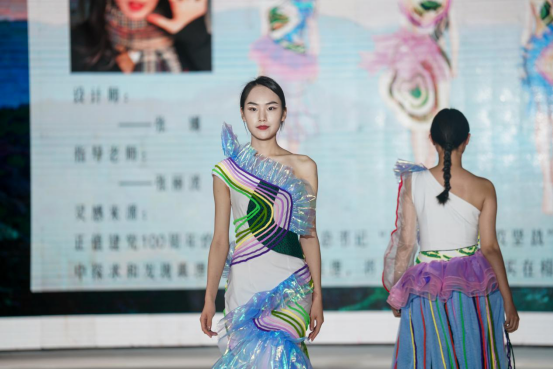 纺织服装学院院长周衡书介绍,本次毕业作品汇报以“莲心”为主题,取莲城之名,寓师生连心,共同创造美好未来。同学们结合建党100周年,融入大量红色文化、民族文化元素,在作品主题、元素运用、科技创新等均较以往有所突破,或运用独特的面料处理技艺和款式造型手法,彰显前沿的设计理念,或结合时尚潮流与市场需求,展现为生活而设计的强烈意识。本次毕业作品展演,既检验了学生四年来的学习和实践动手能力,也体现了学院专业建设、人才培养方面的成果。
