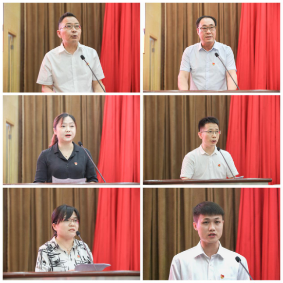 “今天我虽然已退休,但思想没有退休,只要组织召唤我,我一定尽自己的力量,全力做好党组织交办的任务。”“每个党员都是一台发动机,我们将以求真务实的工作作风,抢抓机遇,开拓进取,为学校的发展贡献党员的力量。”“我们青年党员聚在一起,国家就会越来越强大,我们将从党史学习中汲取奋勇向前的力量,把‘青春梦’融入‘国家梦’,助力学校、国家发展。”……“光荣在党50年”老党员代表王益民、湖南省高校党建“标杆院系”机械工程学院党委代表谢骐、湖南省高校党建“样板支部”管理学院教工第二党支部代表廖文军、湖南省2021年度优秀党务工作者工程训练中心党总支书记胡慧、湖南省高校教工党支部书记“双带头人标兵”材料与化工学院教工第二党支部书记张儒、2019年湖南省担当作为优秀干部工程训练中心副主任孙静、优秀大学生党员代表动力工程专业2019级硕士研究生李志雄作大会交流发言。