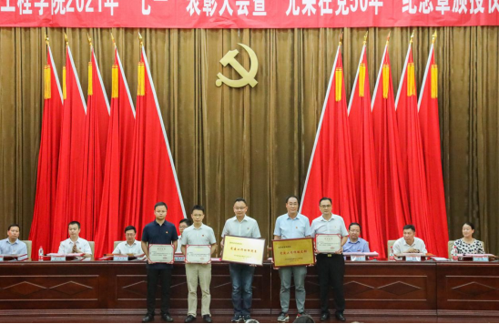 易兵在主持中表示,在党的百年华诞即将到来之际,学校召开此次表彰大会不仅是为老党员颁授纪念章、表彰先进,更是激励基层党组织和广大党员继承和发扬党的优良传统,发挥战斗保垒作用和先锋模范作用,为推动学校高质量发展和跨越发展,为全面建成特色鲜明高水平工程应用型大学而努力奋斗。