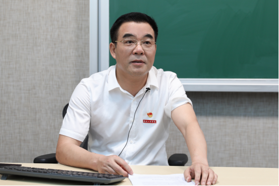 陈岳堂从“传承伟大建党精神,构筑信仰真理力量”“知史爱党知史爱国,汇聚爱党爱国力量”“牢记使命勇于担当,奉献青春奋进力量”三个方面,用详实的案例和生动的图片,为新生阐述了中国共产党从小到大、由弱到强,从一叶扁舟到巍巍巨轮的奋斗历史,带领大家追寻先辈足迹,深刻感知坚持真理、坚守理想,践行初心、担当使命,不怕牺牲、英勇斗争,对党忠诚、不负人民的伟大建党精神,教育广大新生厚植家国情怀,勇担时代使命和青年责任。
