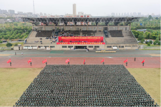 检阅开始,参训新生军容严整、士气高昂,动作整齐划一、口号响彻云霄,各学院方阵依次通过主席台,接受检阅,尽显当代青年风采。刺杀操方阵军容严整,精神抖擞、士气高昂,他们动作整齐划一、震撼有力。文化特色方阵口号铿锵有力、动作整齐,通过变换动作依次摆出“红船”“100”“70”“湖工”“校训”等字样和图案,以特别的方式庆祝建党100周年、建校70周年。退役复学老兵进行刺杀操、特种战术表演。
