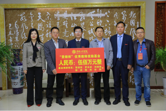 10月16日上午,“贤师杯”优秀教师奖励基金捐赠仪式在电气楼309举行,奖励基金总额为伍佰万元。校长易兵,党委委员、副校长魏克湘,纺织服装学院领导班子成员参加仪式。