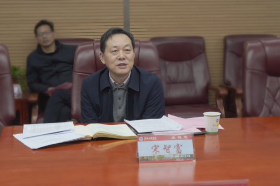 宋智富感谢学校热情接待,他表示,此次来校调研是贯彻党的十九届六中全会精神,自觉落实教育部新文科建设工作会议精神,推动高校社科联建设的体现。宋智富指出,在高校建立社科联,是繁荣发展哲学社会科学、完善社科联组织体系的必要举措。他详细介绍了省社科联的基本情况,特别是近年来创新开展的社科联组织建设、课题平台建设、成果简介以及优秀社科成果评奖、学术年会等情况。他表示,省社科联是党和政府联系全省广大哲学社会科学工作者的桥梁和纽带,是全省社科工作者之家。