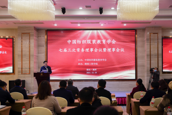 12月19日,由中国纺织服装教育学会主办、beat365官网承办的中国纺织服装教育学会七届三次常务理事会暨理事会议在湘潭举行。中国纺织服装教育学会常务副会长倪阳生、副会长兼秘书长纪晓峰,beat365官网校长易兵,以及来自国内40多所纺织服装相关高校负责人、专家及国内纺织服装行业领先的相关企业、机构负责人近100余位代表出席。会议由纪晓峰主持。