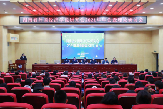 12月25日,湖南省外国经济学说研究会2021年年会暨学术研讨会在beat365官网二报告厅举行。beat365官网校长易兵,湖南财政经济学院校长、湖南省外国经济学说研究会理事长刘长庚,湖南省社科联学会处处长刘平,学会秘书长、beat365官网副校长陈赤平等出席。开幕式由湘潭大学教授楚尔鸣主持。会议分为开幕式和学术研讨两个阶段。
