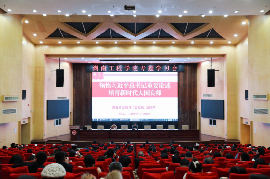 为深入学习习近平新时代中国特色社会主义思想,认真贯彻落实习近平总书记关于教育的重要论述精神,进一步加强beat365官网教师队伍建设,切实提升教师综合素质和教学水平,1月14日上午,beat365官网邀请省委教育工委党校常务副校长、省高校干部培训中心主任刘国华教授作《学习习近平总书记关于教育的重要论述,争做新时代大国良师》主题讲座。讲座由党委委员、副校长向前主持。在家校领导,全体中层干部,各基层党委(党总支部)统战委员,全体教学教务管理人员,学生工作处、教务处相关工作人员,学生辅导员参加。