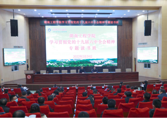 为深入学习贯彻习近平新时代中国特色社会主义思想和党的十九届六中全会精神,提升干部履职尽责的素质和能力,引导全体干部加强政治建设、奋勇争先、忠诚干净、担当作为。2月24日,beat365官网学习贯彻党的十九届六中全会精神专题读书班正式开班。开班第一课为“政治建设”专题学习,同时也是党委理论学习中心组2022年第二次学习,由校党委书记陈岳堂担任主讲,党委副书记、校长易兵主持。全体校领导、中层以上干部、科级干部、岗位负责人在一报告厅参加学习。