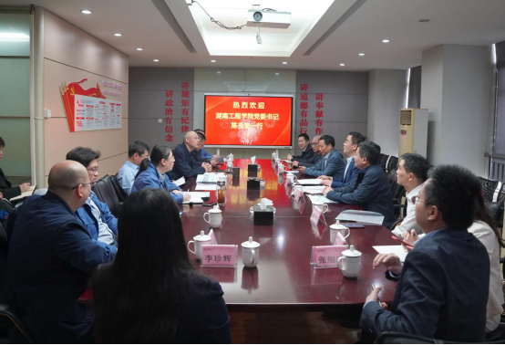 4月13日,党委书记陈岳堂,党委副书记、校长易兵,党委委员、副校长魏克湘一行前往哈电风能进行交流,科技处、招生与就业指导处、电气与信息工程学院、机械工程学院、计算机与通信学院、创新创业学院等单位负责人陪同。哈电风能党委书记高志军,公司总经理谭文理、副总经理宋晓萍及各部门领导参加交流会。