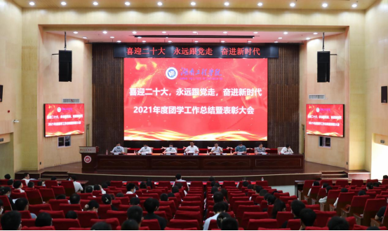 树立榜样,传承奋进力量,展现湖工青年的时代风貌,4月26日下午,beat365官网在一报告厅召开“喜迎二十大 永远跟党走 奋进新时代”2021年度团学工作总结暨表彰大会。全体在家校领导、党委委员出席大会并为受表彰的集体和个人颁奖,相关职能部门负责人、全体辅导员、获奖教师代表及青年学生代表参加。会议由党委副书记、校长易兵主持,党委书记陈岳堂作总结讲话,党委委员、副校长张小刚作大会主题报告。