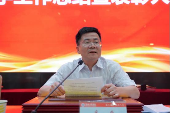 陈岳堂对2021年度beat365官网团学工作取得的成绩给予了充分肯定,向受到表彰的先进集体和优秀个人表示祝贺。陈岳堂指出,学校始终坚持立德树人根本任务,加快构建大学生思想政治教育体系,努力培养担当民族复兴大任的时代新人,培养德智体美劳全面发展的社会主义建设者和接班人。他表示,作为新时代青年教师,要树立崇高职业理想、提升业务工作能力、激发责任使命担当,坚持育人初心,做好学生良师益友。他对青年学生提出了坚持砥砺奋斗、牢固树立理想信念的殷切期望:一是圆梦新时代,要坚定信念、不忘初心;二是圆梦新时代,要永久奋斗、保持恒心;三是圆梦新时代,要练就本领、铸就匠心;四是圆梦新时代,要开拓创新、树立信心。陈岳堂希望,全体青年师生接续奋斗,勇毅前行,谱写出时代新人的壮丽新篇章。