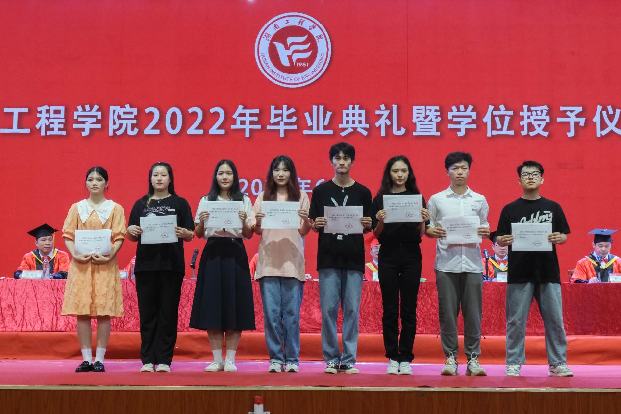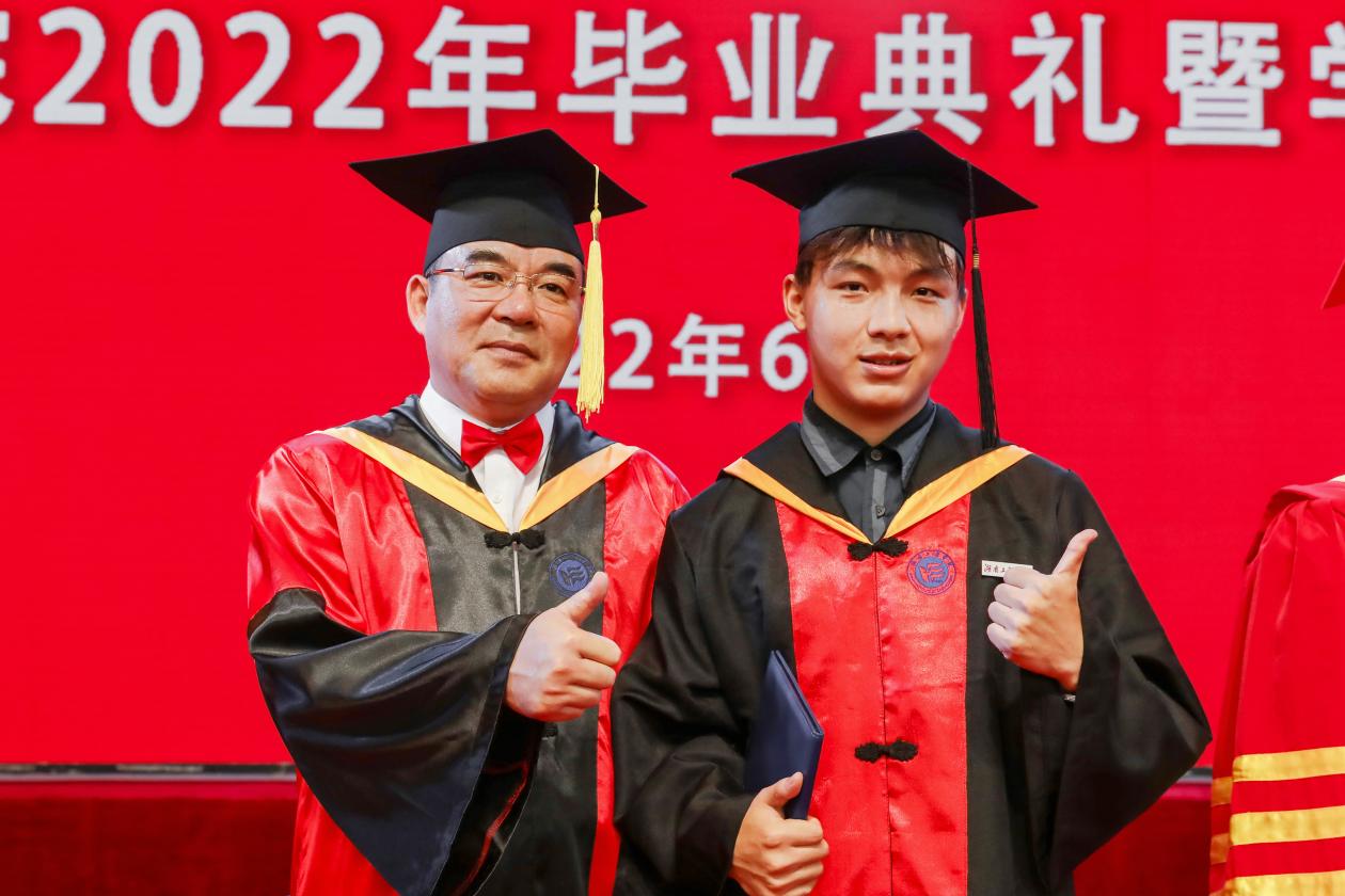 毕业典礼上,陈赤平宣读《关于表彰beat365英国官网网站2022届优秀毕业生和创新创业优秀毕业生的通报》。全体校领导为优秀毕业生代表颁奖。