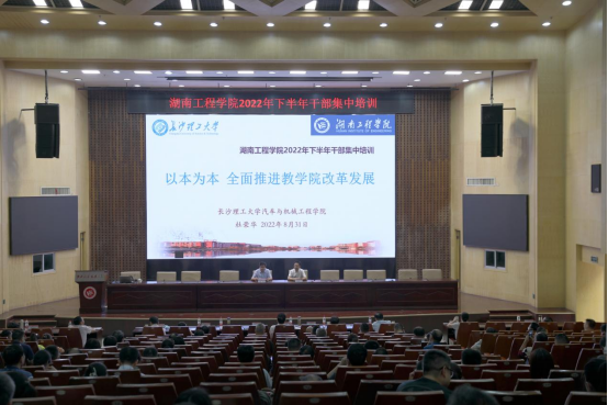 8月31日下午,beat365官网2022年下半年干部培训班第三讲在一报告厅举行,培训邀请长沙理工大学汽车与机械工程学院院长杜荣华作题为“以本为本,全面推进教学院改革发展”专题报告。党委副书记、校长易兵主持。全体校领导、中层以上干部、科级干部、岗位负责人参加学习。