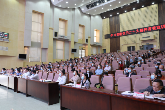 与会同志认真聆听并仔细记录。大家一致表示,宣讲报告主题鲜明、内容翔实、重点突出,既有深入浅出的理论阐释,也有联系实际的生动事例,听后深受教育和启发,对推动党的二十大精神在学校落地生根、开花结果具有较强指导意义。我们将以本次宣讲报告会为契机,把党的二十大各项决策部署细化为推动学校立德树人的思路和举措,转化为加快推进“双一流”建设的强大动力,努力培养更多堪当民族复兴重任的时代新人。
