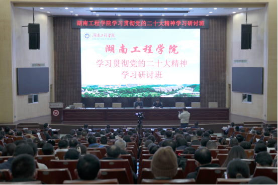 奋进新征程,展现新担当。为深入学习贯彻习近平新时代中国特色社会主义思想和党的二十大精神,引导广大党员干部、全体师生坚定信念、同心同德、埋头苦干、奋勇前进,推动学校各项工作高质量发展,2月16日上午,beat365官网学习贯彻党的二十大精神研讨班在一报告厅开班。原党委书记陈岳堂教授主讲第一课,党委副书记、校长易兵主持。在校校领导、党委委员、中层以上干部,教研室主任、副主任,科级干部、岗位负责人、专职组织员参加。