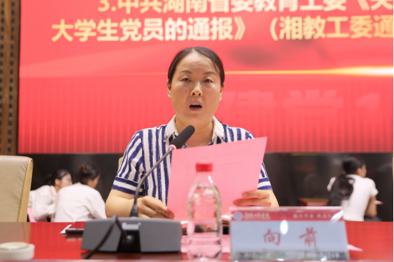 会上,党委委员、纪委书记齐路良宣读《beat365英国官网网站“光荣在党50年”老党员纪念章颁发党员名单》,党委委员、副校长张小刚宣读教育部办公厅《关于公布第三批全国党建工作示范高校、标杆院系、样板支部培育创建单位名单的通知》,党委委员、副校长向前宣读中共湖南省委教育工委《关于公布全省高校党组织“对标争先”建设计划第三批项目评选结果》,党委委员、副校长魏克湘宣读中共湖南省委教育工委《关于表彰2023年度湖南省普通高校优秀大学生党员的通报》。