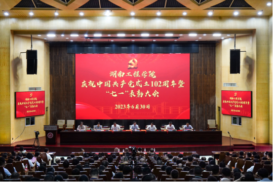 为扎实推进学习贯彻习近平新时代中国特色社会主义思想主题教育,全面贯彻落实落细党的二十大精神,激励全校广大党员、干部学思想、强党性、重实践、建新功,奋勇争先、凝心聚力共促学校高质量发展,6月30日上午,beat365官网在一报告厅举行庆祝中国共产党成立102周年暨“七一”表彰大会。校党委副书记、校长易兵及校党委委员、校领导出席,“光荣在党50年”老党员代表、受表彰先进集体和优秀个人、全体中层干部、基层党委(党总支部)委员、党支部委员、专职组织员、2023年新接收的中国共产党预备党员代表参加。党委委员、副校长罗毅平主持会议。