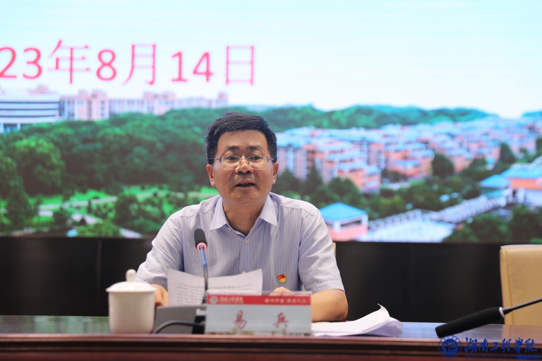 易兵表示,非常感谢省委巡回指导组对学校主题教育工作开展的指导和支持;自4月份学校开展学习贯彻习近平新时代中国特色社会主义思想主题教育以来,学校党委认真贯彻落实党中央关于主题教育的统一重大部署和省委要求,牢牢聚焦学习贯彻习近平新时代中国特色社会主义思想这一根本任务,紧紧围绕学理论、强党性、重实践、建新功的总要求,不划阶段、不分环节,坚持将理论学习、调查研究、推动发展、检视整改、建章立制等重点任务统筹推进、贯穿始终。他表示,实际工作中,结合“走找想促”活动,推动党的创新理论入心见行,党员干部善思善用;调查研究方面摸清校情民意,聚焦解决实际问题;扎实开展提高人才培养质量和开展“畅、洁、绿、静、安”创建宜学宜教美丽校园两个专项行动,不断提升师生获得感;检视整改方面找准问题症结,扎实开展整改整治;强化第一责任人责任,各级领导严格落实“一岗双责”,确保主题教育不走样不变形,取得了明显成效。