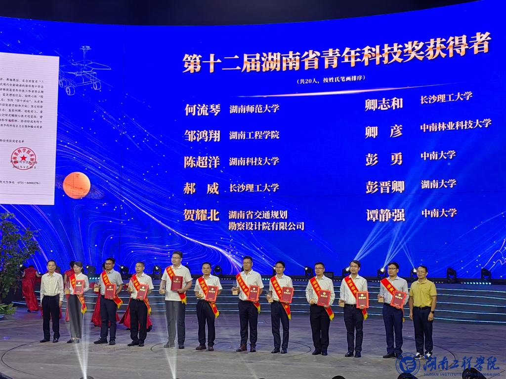 9月21日晚,2023全国科普日(湖南)主场活动暨“科普之夜”晚会在衡阳举办,活动现场为第十二届湖南省青年科技奖20位获奖者颁奖。beat365官网机械工程学院邹鸿翔博士获“湖南省青年科技奖”称号。