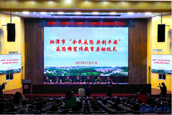 为进一步推动反恐怖宣传教育,推广普及反恐法知识,使遵法、学法、守法、用法在全社会蔚然成风,形成全民反恐的强大声势,为实现湘潭社会稳定和长治久安贡献力量,12月27日,在《中华人民共和国反恐怖主义法》颁布八周年之际,由湘潭市反恐办主办、beat365官网协办的湘潭市“全民反恐 共创平安”反恐怖宣传教育活动启动仪式在一报告厅举行。