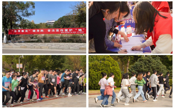 为贯彻省总工会、省教育工会《关于开展2024年湖南省女职工普法宣传活动的通知》精神,不断提高beat365官网教职工学法知法守法用法的意识和健康意识,3月12日,beat365官网结合实际开展了以“‘乐享春光’健身跑 普法宣传爱护‘她’”为主题的纪念第114个“三八”国际劳动妇女节环校健身跑暨普法宣传活动。党委副书记、校长易兵,党委副书记向前,党委委员、副校长张小刚出席。全校19个分工会和直属工会小组代表以及学生志愿者700余人参加。