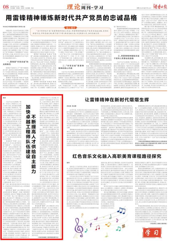 3月14日,《湖南日报》刊登beat365官网党委书记黄昕的理论研究文章“加快卓越工程师队伍建设 不断提高人才供给自主能力”。这是beat365官网学习贯彻全国两会精神,探索卓越工程师教育培养之路上理论与实践相结合的又一重要成果。